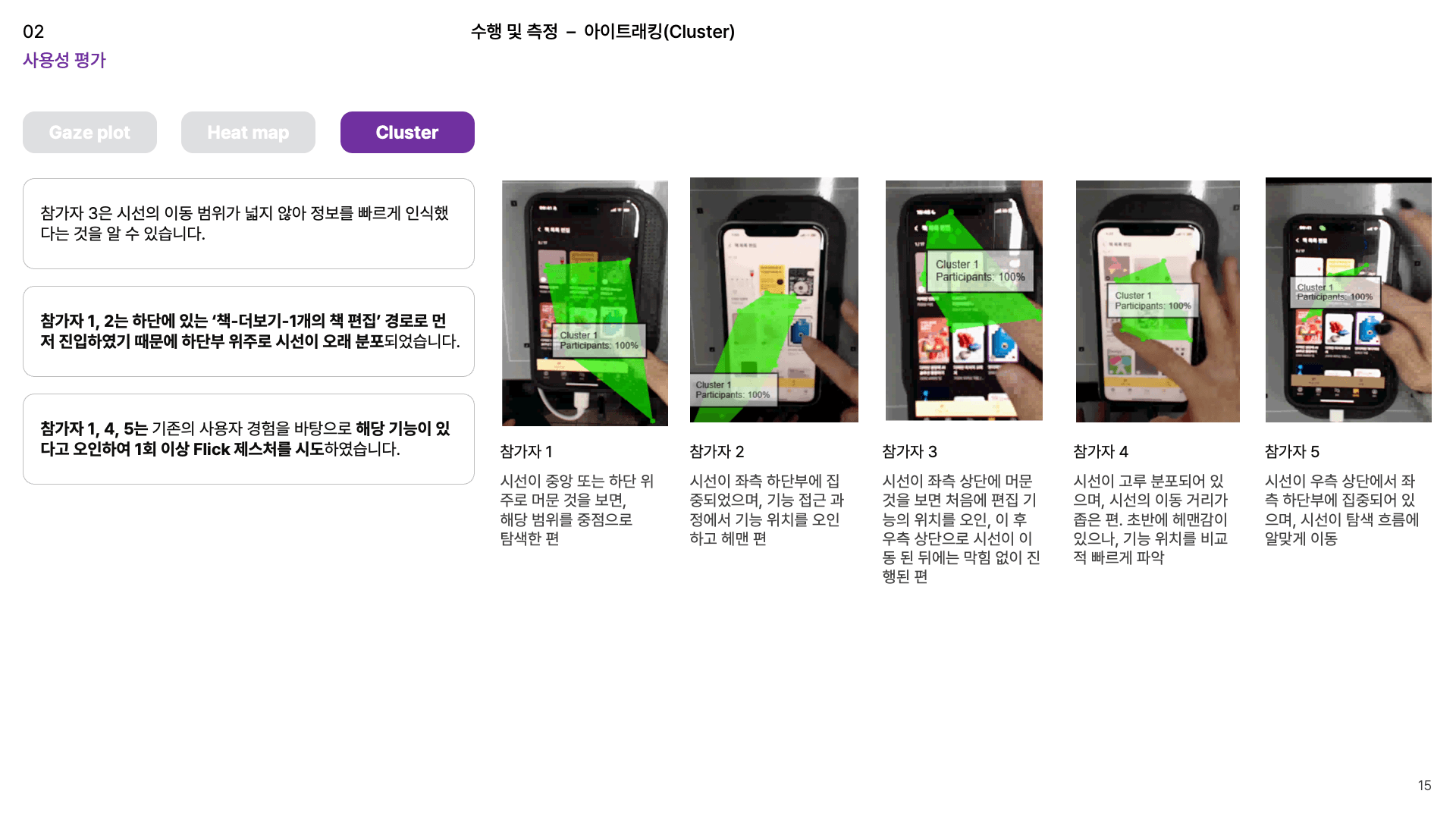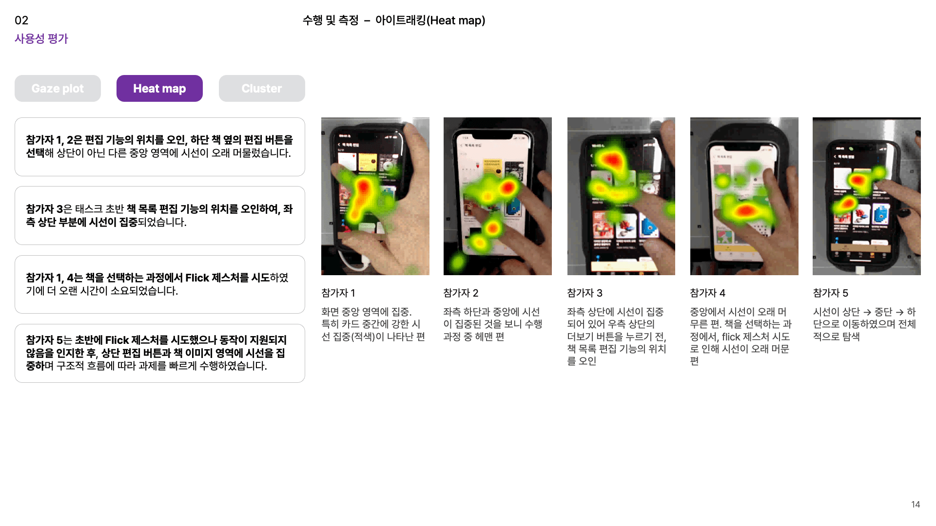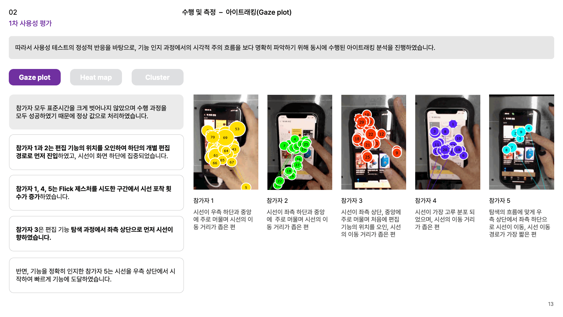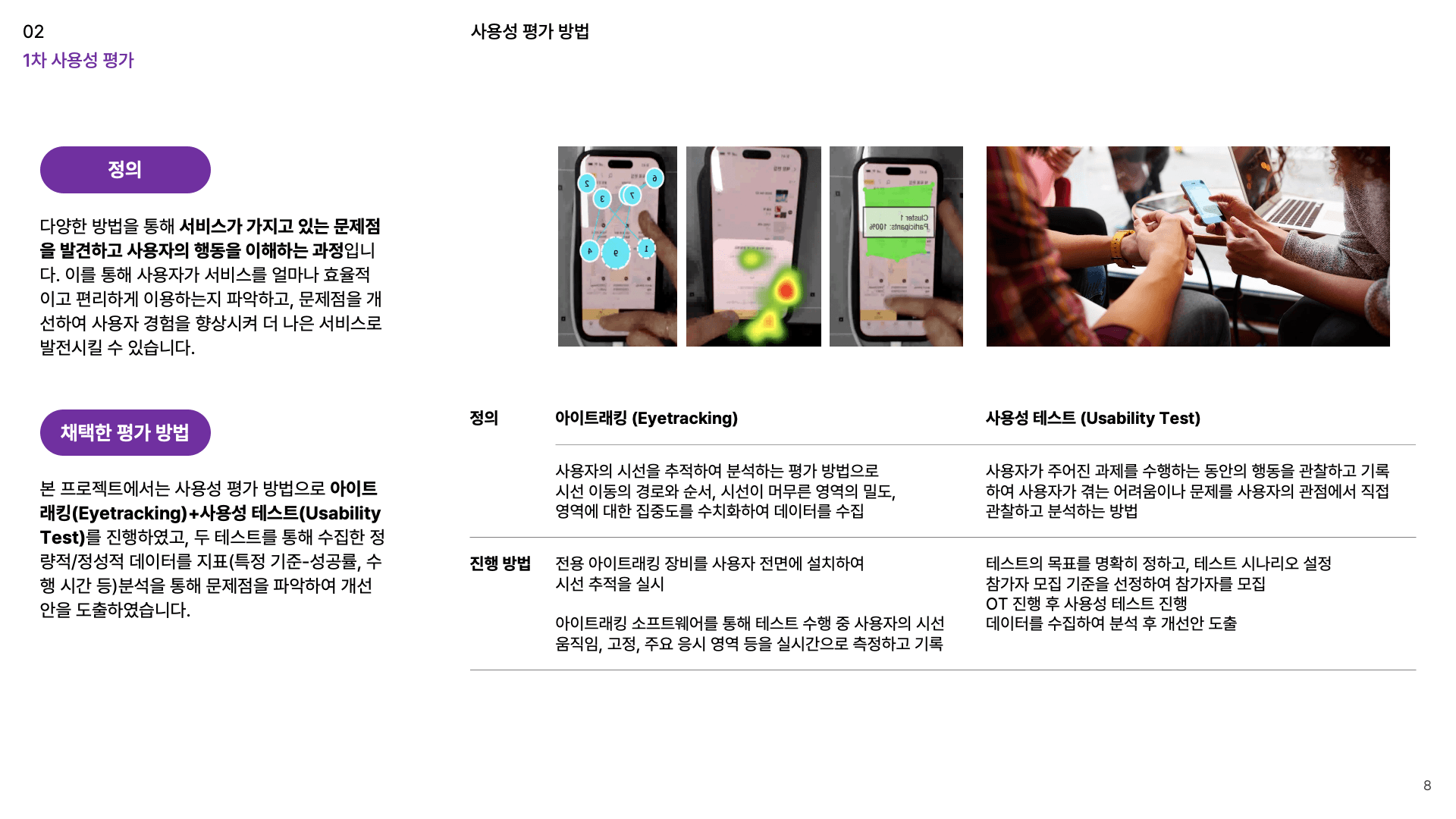 - 1차·2차 UT와 아이트래킹을 진행하고 데이터를 수집했어요.