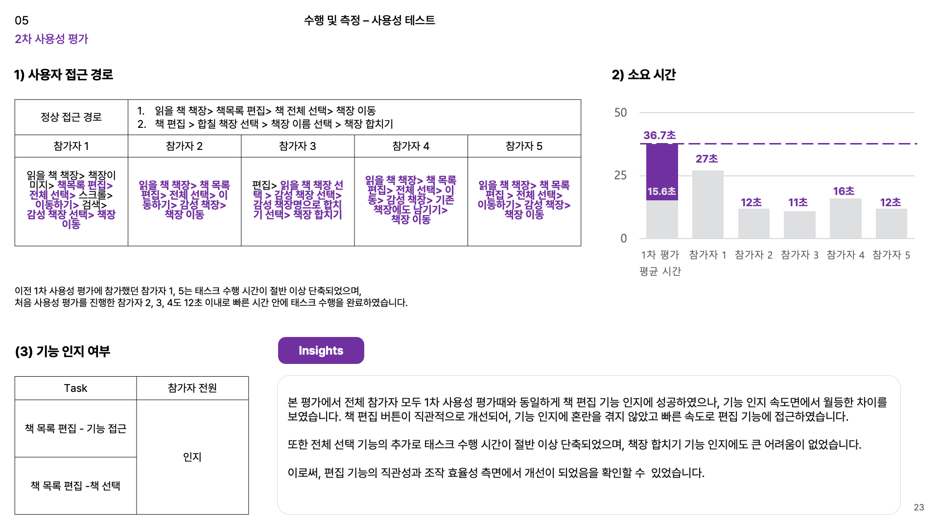 - 참가자 5명 중 4명이 책 옆 더보기 버튼을 편집 기능의 진입 경로로 인식했어요.