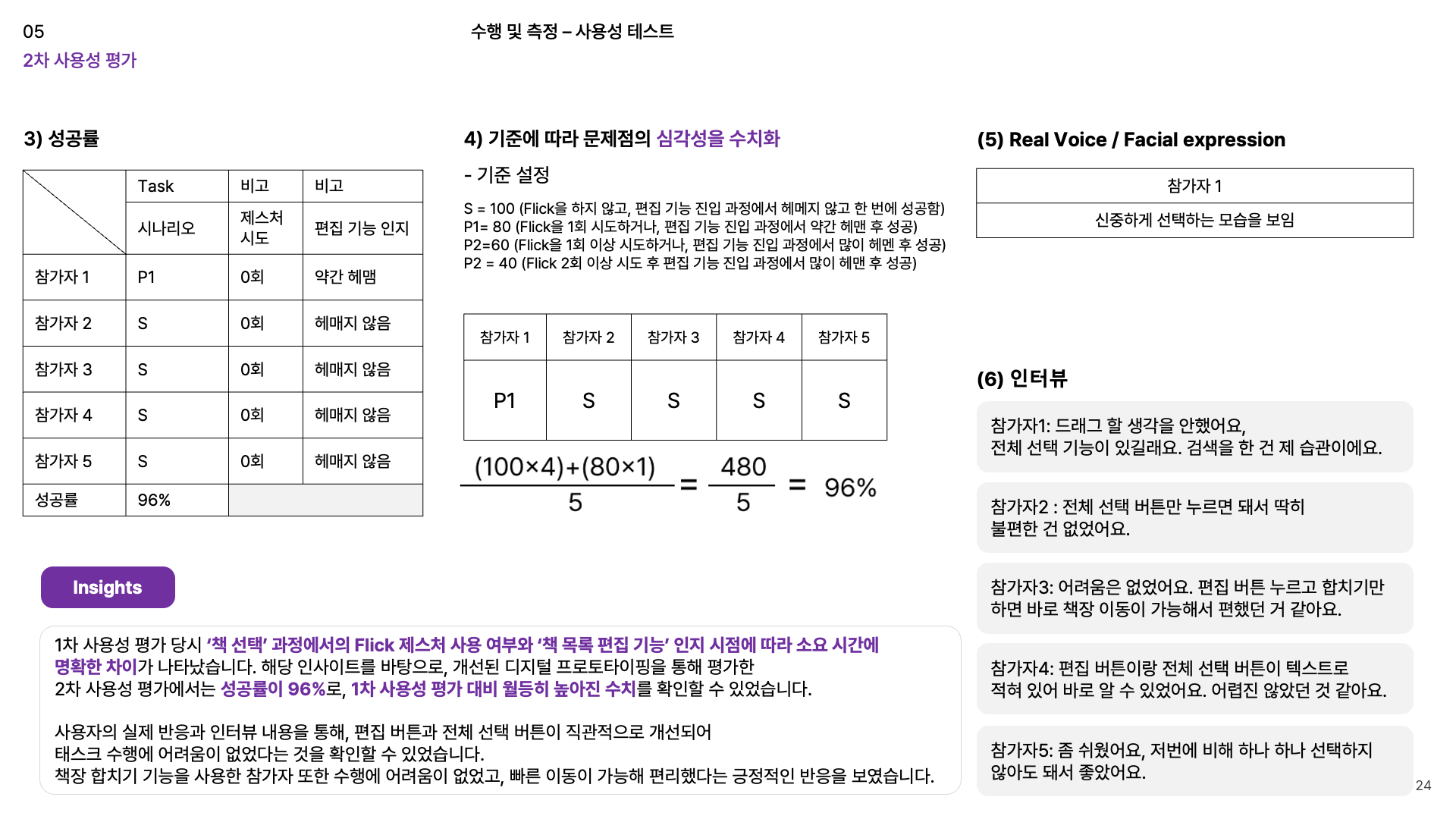 - 일부 참가자는 의도하지 않은 경로를 통해 기능을 찾거나, 우리가 가정하지 않은 방식으로 작업을 수행했어요.